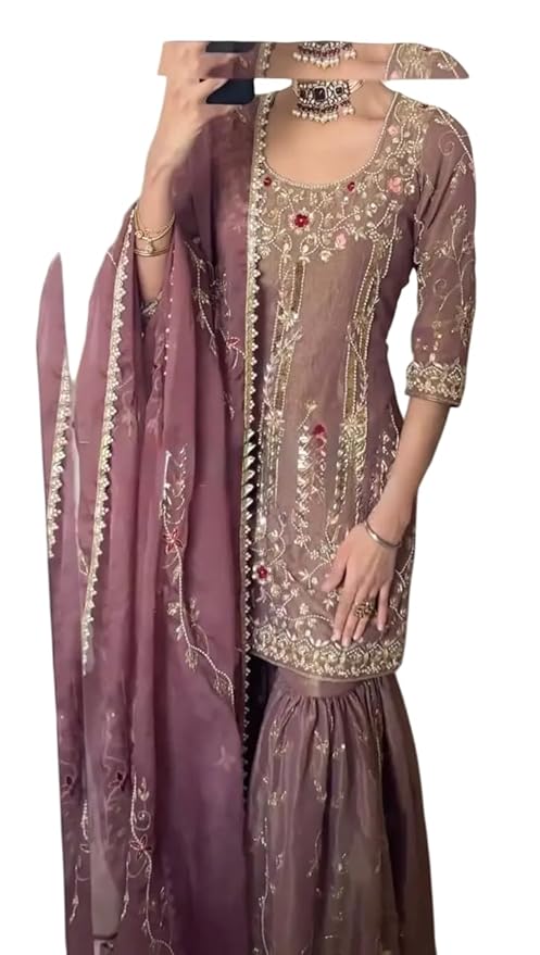 - Comfortable & Relaxed Fit: Designed with a flattering straight Anarkali A- Line Nayra-cut Kurti kurta Suit and relaxed-fit Salwar palazzo pants for ultimate comfort and ease of movement.